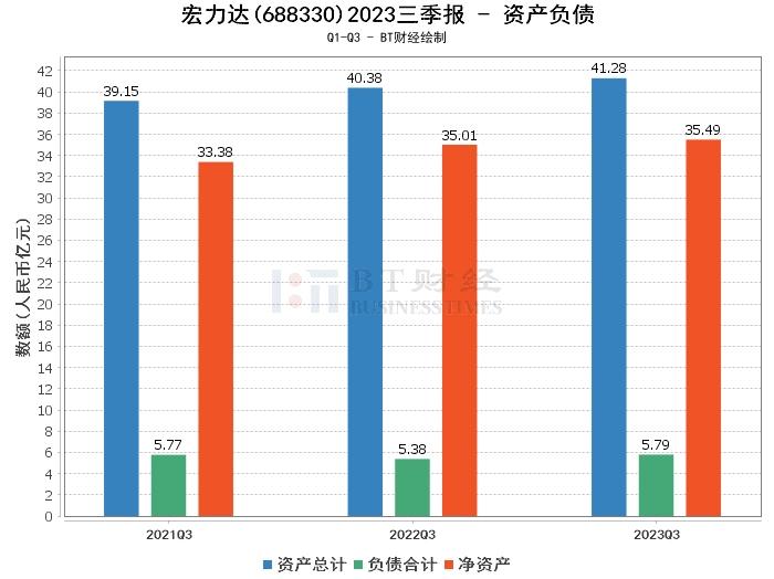 从资产负债方面看,宏力达2023年三季度的总资产为41.28亿元,相较于上年度末的41.51亿元略有下滑。负债合计为5.79亿元,较上年度末的6.18亿元有所减少。净资产为35.49亿元,较上年度末的35.32亿元略有增加。资产负债率为14.03%,较上年度末的14.89%有所下降。