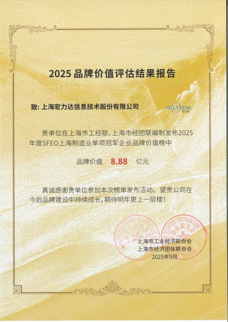 近日,由上海市工经联、上海市经团联主办的2025年度SFEO上海制造业单项冠军企业品牌价值榜榜单正式揭晓,宏力达凭借强劲的综合实力与持续的创新能力成功入围。此次登榜,是对宏力达长期深耕品牌建设、坚持高质量发展的高度肯定,标志着品牌影响力与行业地位再上新台阶。