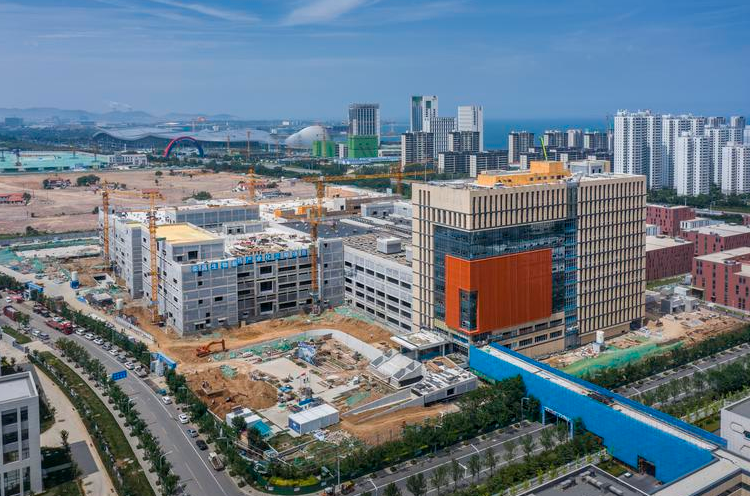 在3期工程建设现场,主楼墙体外围有数名“蜘蛛侠”正在进行外墙装饰,而在层层脚手架包裹下的辅楼,也已经完成了楼体封顶工作,预计今年底部分可投入使用。