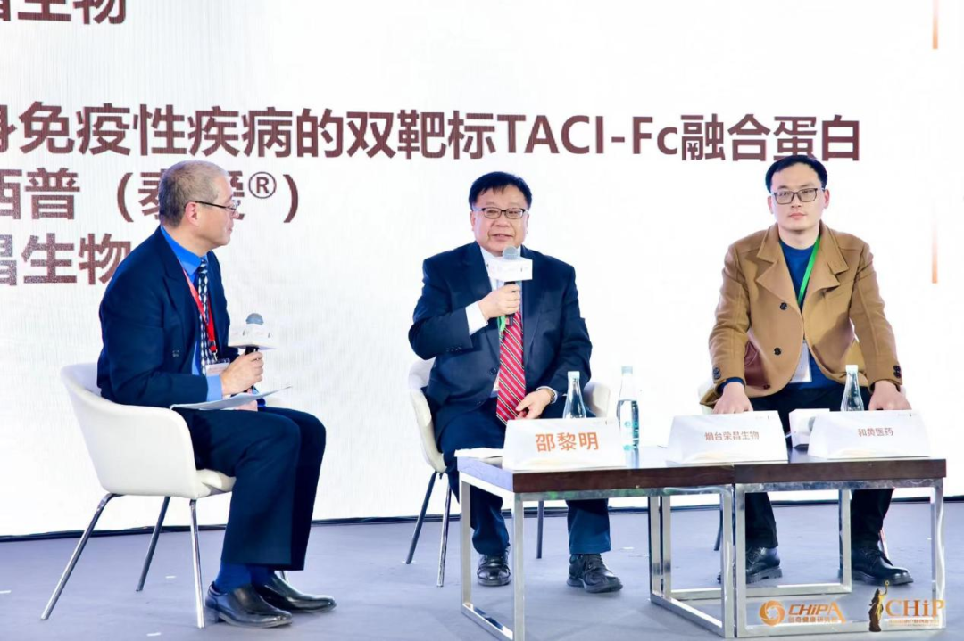 颁奖盛典上,傅道田博士代表公司展示了泰它西普、维迪西妥单抗项目。泰它西普经过13年的研发,完成了从分子设计到关键临床试验的新药研发历程,在系统性红斑狼疮适应症的临床试验中取得了全球领先的数据,在国际上首次证明BLyS和APRIL双靶向新药能安全有效地治疗系统性红斑狼疮,市场潜力巨大,具有很强的竞争力。维迪西妥单抗是我国首个获批上市的国产ADC新药,在ADC领域具有开拓性意义,目前该药胃癌和尿路上皮癌两个适应症已在国内获批上市。