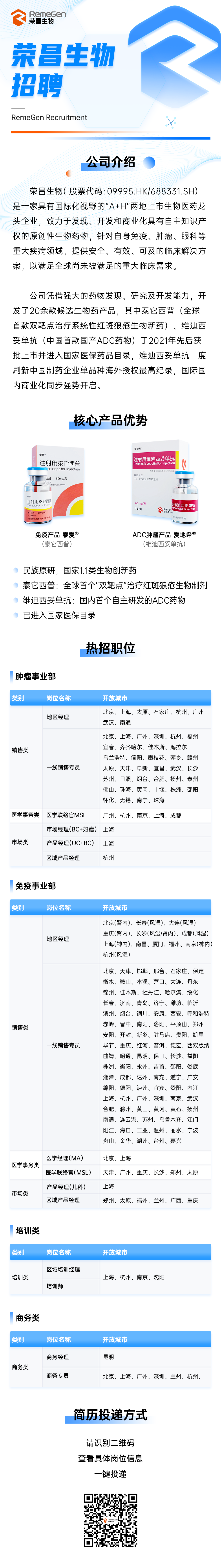 招聘 | 荣昌生物邀你开启“向往的事业”