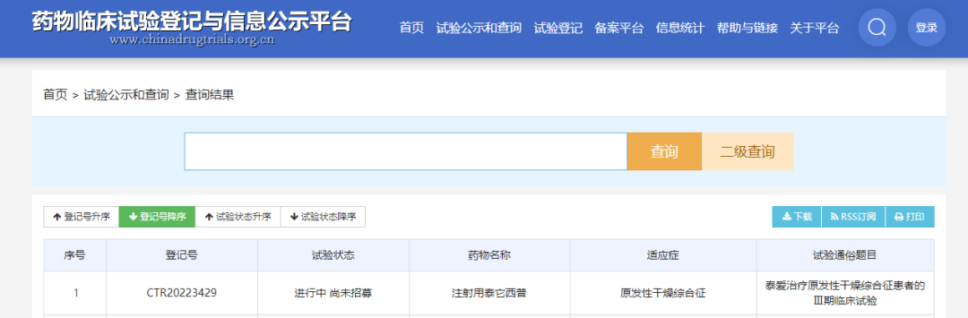 这是一项随机、双盲、多中心Ⅲ期临床,旨在评估泰它西普治疗原发性干燥综合征患者的有效性和安全性。研究的主要终点是治疗第24周ESSDAI评分(衡量干燥综合征疾病活动的金标准)较基线的变化。该研究由中国医学科学院北京协和医院主任医师曾小峰博士担任主要研究者,拟在69家医疗机构开展,招募375名患者。