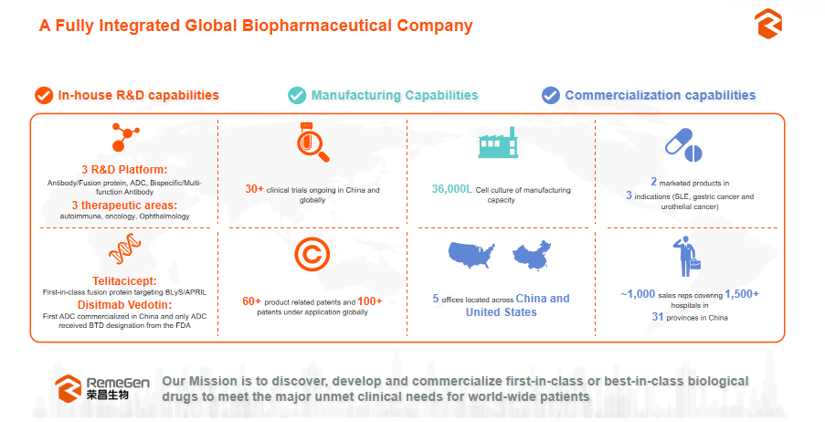 最后,房博讲解了公司的战略规划重点,主要包括以下五点:继续加速泰它西普和维迪西妥单抗在中国的商业化,并通过拓展适应症和联合治疗等方式扩大这两款产品的销售规模;在全球范围推进后期阶段临床项目,进行广泛的临床开发,最大限度发挥两款获批产品针对更多适应症的治疗潜力;加强海外团队建设,加大力度执行正在进行的全球项目,并适时启动其他早期产品的全球临床试验;加强创新研发,不断丰富产品管线,推动更多候选药物进入临床,每年确保数个新药申报临床;推动国际合作,将现有产品推向全球市场,同时有选择地收购或授权引进新产品,使其与现有产品形成协同作用。