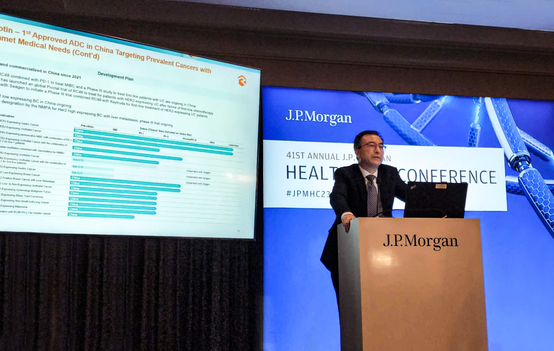 北京时间1月12日早上7点30分,第41届摩根大通医疗健康年会(J.P. Morgan Healthcare Conference)会场,荣昌生物制药(烟台)股份有限公司(688331.SH/09995.HK)CEO、首席科学官房健民博士受邀发表演讲,重点介绍了荣昌生物自成立以来取得的发展成果,包括核心产品的商业化和国际化、丰富厚重的研发管线推进情况,以及未来的战略规划。
