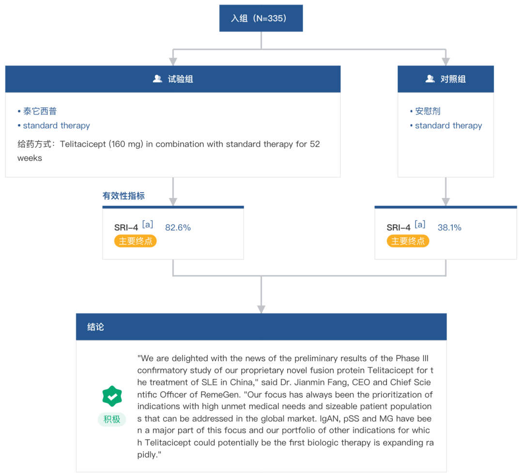 2022 年 9 月,荣昌生物宣布其已完成泰它西普治疗系统性红斑狼疮(SLE)患者的国内Ⅲ期确证性研究,并获得初步数据结果。