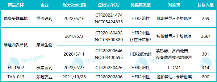 与帕妥珠单抗联合或不联合特瑞普利单抗新辅助治疗 HER2 阳性乳腺癌(受理号:CXSL2200632)。