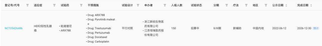 针对该适应症,国产企业中浙江医药 HER2 ADC ARX788 也在开展 II/III 期临床研究(登记号:NCT05426486)。该试验于去年 5 月启动,预计招募 150 名受试者,当前正在招募中,预计主要指标于 2025 年 12 月完成。