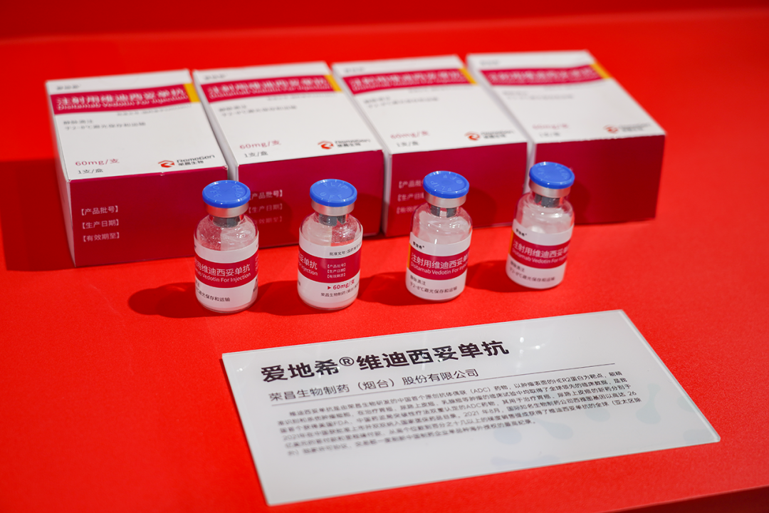本次展览共展出创新药械产品 810 种,其中国内未上市产品441 种,首次在国内展出的产品达394 种。作为国内生物制药领域领军企业,荣昌生物本次携泰它西普、维迪西妥单抗等多款重磅产品和最新科研成果参展。公司现场展台突出“创新”主题,通过数字影像、图片展板、样品模型等展示形式,全方位、多角度展示发展历程、核心产品、技术平台、国际合作、新药产业化项目进展等内容。