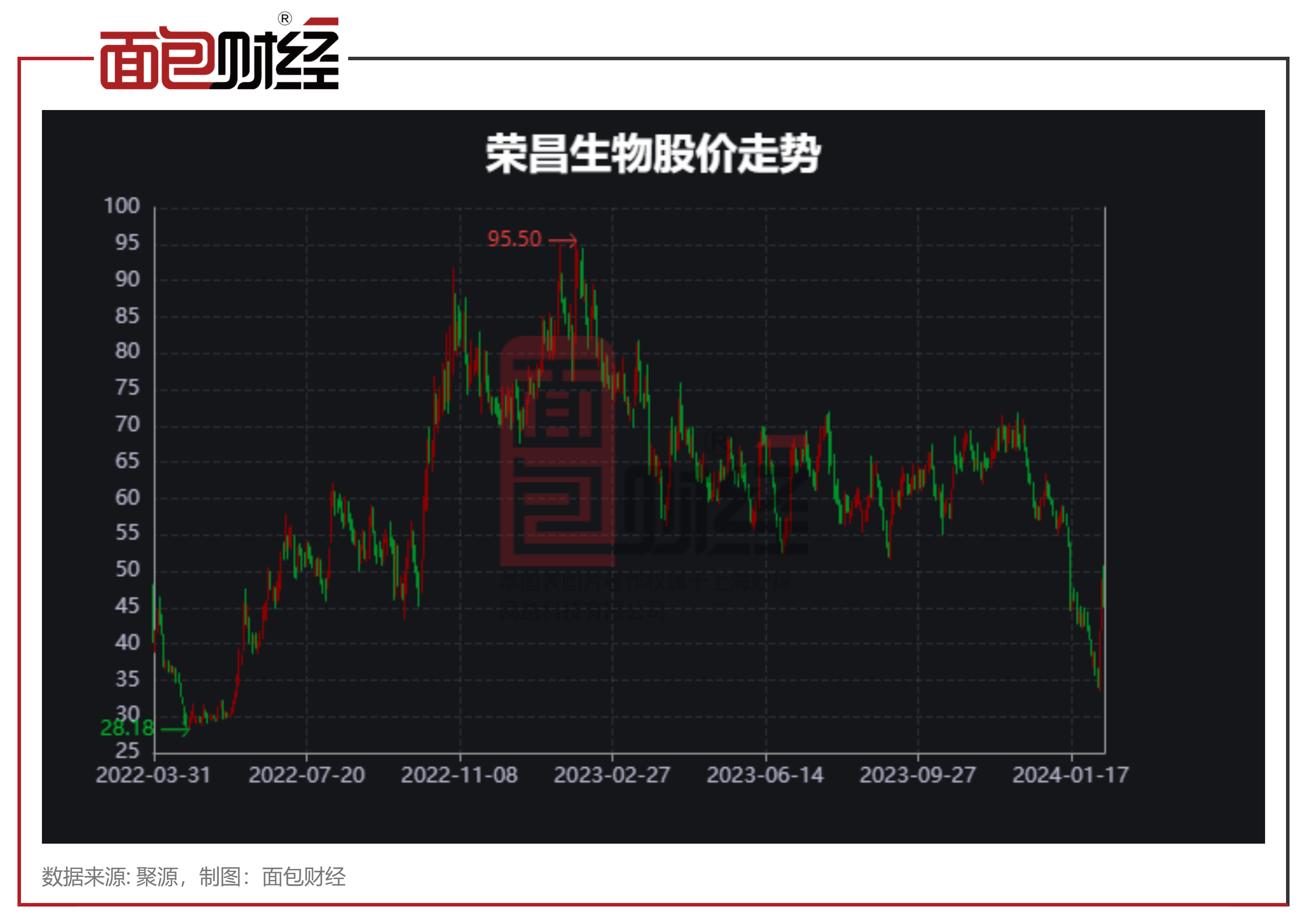 截至2月19日收盘,荣昌生物(688331.SH)股价为44.6元/股(前复权,下同),相较2023年高点下跌超过50%。
