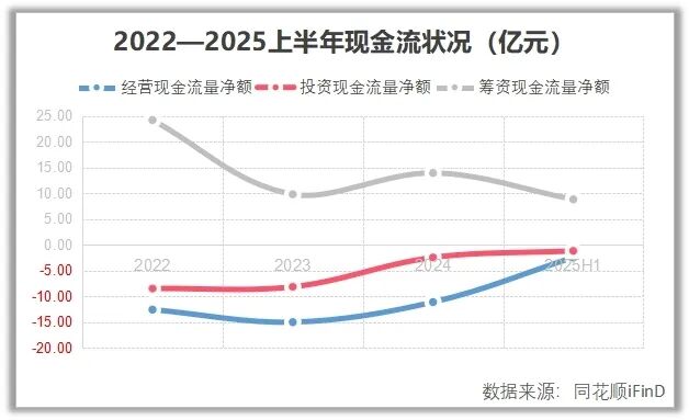 根据数据,荣昌生物从2022年至今经营现金流量净额、投资现金流量净额均为负数,资金主要来源于筹资现金。
