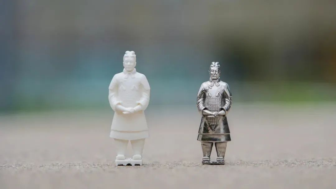 陶瓷兵马俑采用铂力特高温合金兵马俑同款造型,比起高温合金,铂力特陶瓷兵马俑褪去酷炫的金属光泽,“穿”上了属于陶瓷古朴温润的质感。这些温润的光泽来源于铂力特的成形工艺,铂力特的此项工艺还原了传统陶瓷工艺品的优良光洁度,打印完成的零件具有良好的表面质量,光洁度在Ra3.2以下。