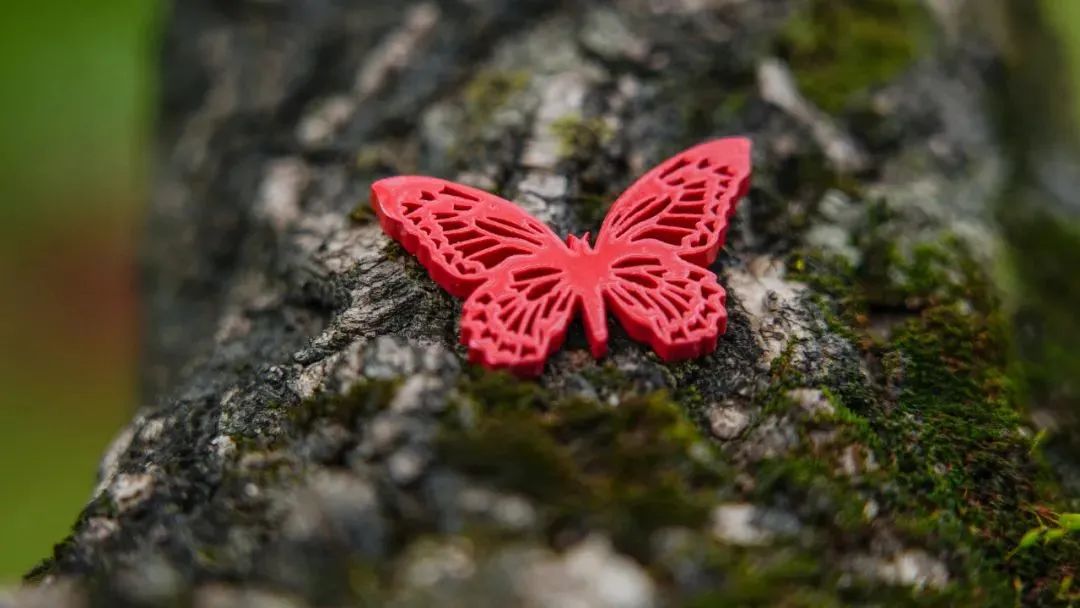 蝴蝶造型的工艺品零件用镂空结构还原蝶翼精致花纹,大面积的镂空结构为该零件大幅减重,零件壁薄至0.5mm,却有良好强度,让陶瓷蝴蝶整体华美轻盈且亦有振翅之力。