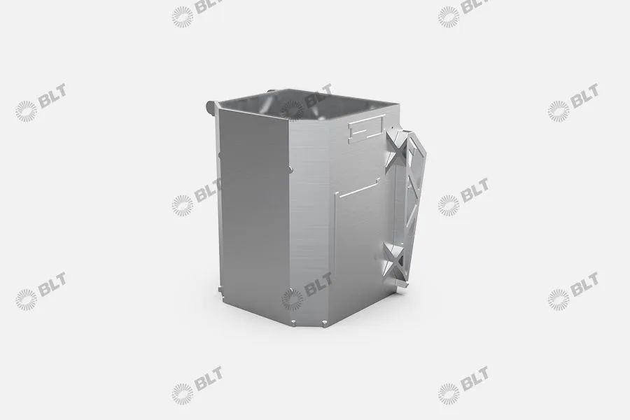 “大连1号-连理卫星”部署器框架由主框架、舱门等多个部件组成,其中主框架结构尺寸约为400mm×400mm×500mm,最小壁厚1mm,对一体成形零件的精度要求较高。铂力特产品团队在分析了卫星服役环境和成形难点后,选用了AlSi10Mg铝合金,利用八激光BLT-S800设备一炉完成打印,实现了零件的快速研制。经检验,最终生产的零件关键部分的尺寸精度满足卫星“克服高低温、热真空、原子氧腐蚀等太空因素,保证卫星长期在轨存储与释放的可靠性”的工况需要。通过工艺迭代,铂力特产品团队先后交付了初样和成品。