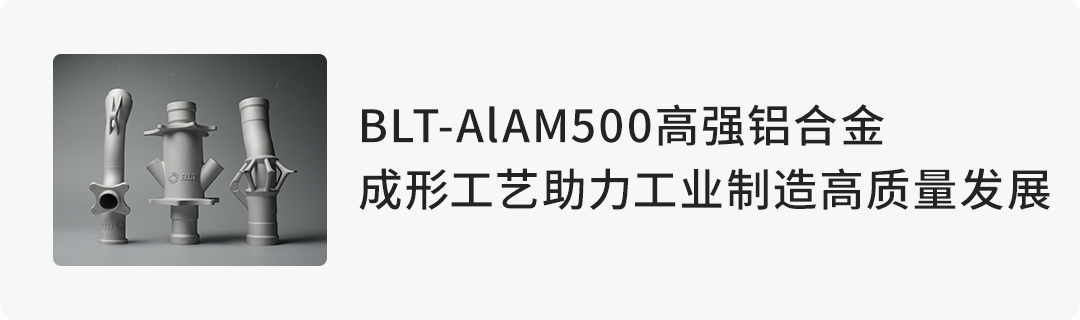 2024年,铂力特推出全新高强铝合金材料BLT-AlAM500并实现了工程化应用。BLT-AlAM500解决了高强铝合金材料易开裂、成形件致密度差等问题,适用于航空航天等对质量性能有较高要求的领域。BLT-AlAM500相较进口原材料成本降低约40%-50%,大大节约制造成本。