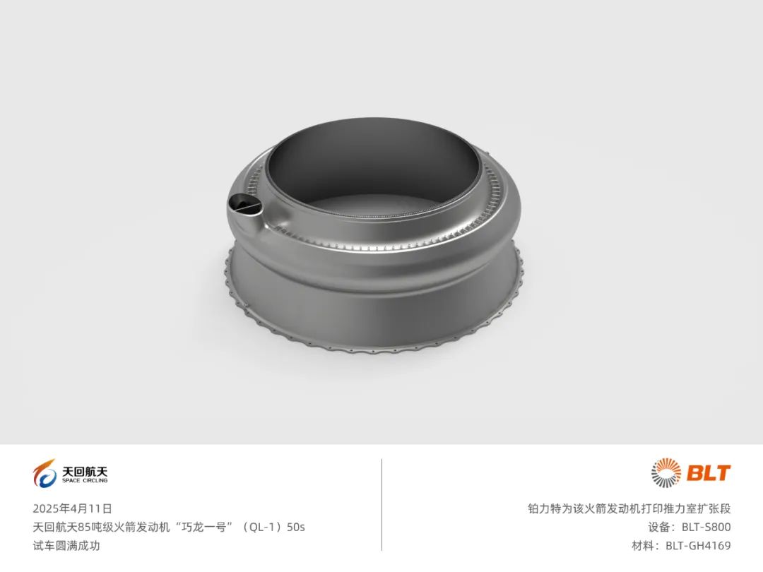 近日,陕西天回航天技术有限公司自主研发的85吨级火箭发动机“巧龙一号”(QL-1)顺利完成50秒试车。试验过程中,发动机起动平顺、关机迅速,全程运行高效稳定、状态完好,标志着我国航天动力技术实现又一重大突破。这一成果的取得,既凝聚了天回航天团队的不懈努力,还得益于铂力特的关键技术支持。铂力特为“巧龙一号”发动机深度定制并打印了包括涡轮泵、推力室、阀门等在内的20余项核心零部件,发动机上主要3D打印零件均由铂力特提供,为试车成功奠定了坚实基础。