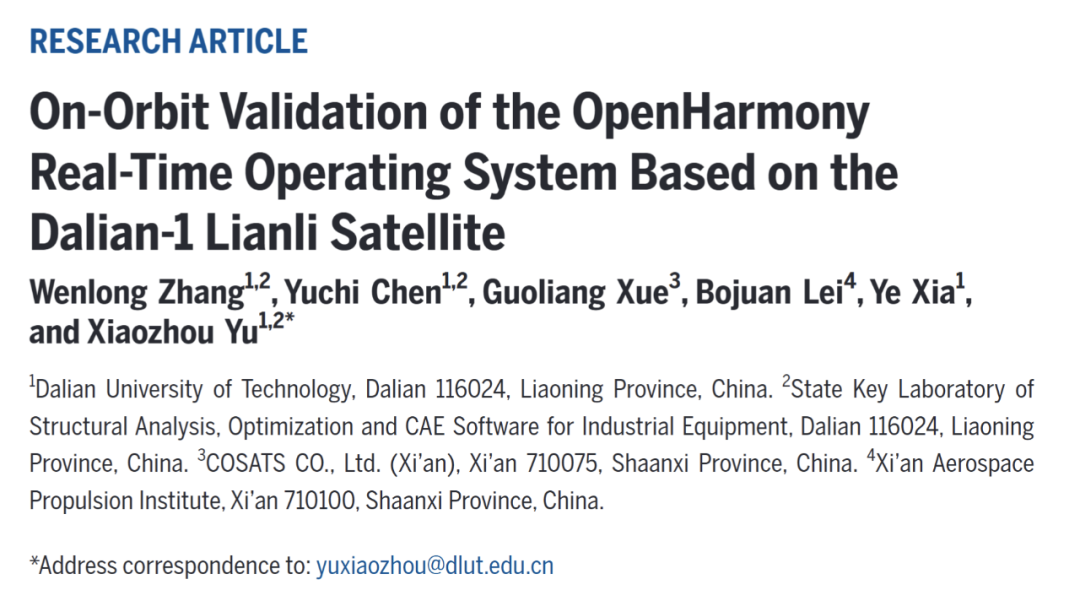 近日,由大连理工大学、星众空间(西安)科技有限公司及西安航天动力研究所的研究人员共同撰写的On-Orbit Validation of the OpenHarmonyReal-Time Operating System Based on the Dalian-1 Lianli Satellite由大连理工大学、星众空间(西安)科技有限公司及西安航天动力研究所的研究人员发表。文章报告了OpenHarmony RTOS移植到磁力计、数字接口太阳敏感器和姿态测量单元3款姿态确定子系统后的地面测试与在轨验证,为未来更多的微纳卫星任务部署OpenHarmony RTOS奠定了基础。