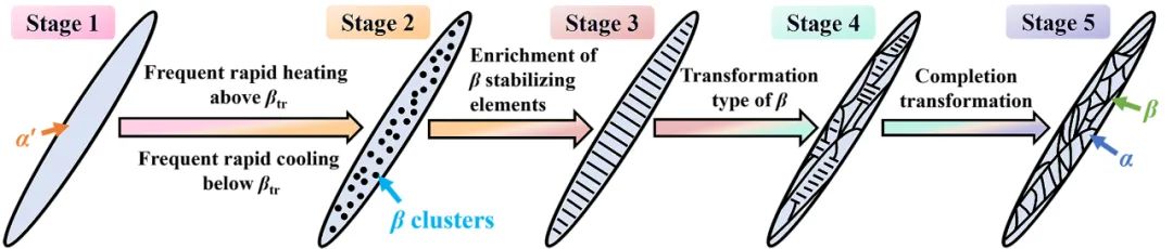 钛合金因高比强度、比刚度以及出色的耐腐蚀性等优势应用广泛。然而,在制造复杂构件时,传统成形技术受限于成本高昂、质量难以保证等问题,难以满足高效生产需求。金属增材制造技术,尤其是激光粉末床熔融PBF-LB/M技术,为复杂钛合金结构件的高效生产提供了新途径。不过,PBF-LB/M技术的高冷却速率会导致零件内部形成大量α马氏体,进而损害零件力学性能。近期虽有研究尝试在打印过程中调控热积累以实现马氏体快速分解,但其分解机制仍不明晰,限制了PBF-LB/M成形钛合金性能潜力的充分发挥。