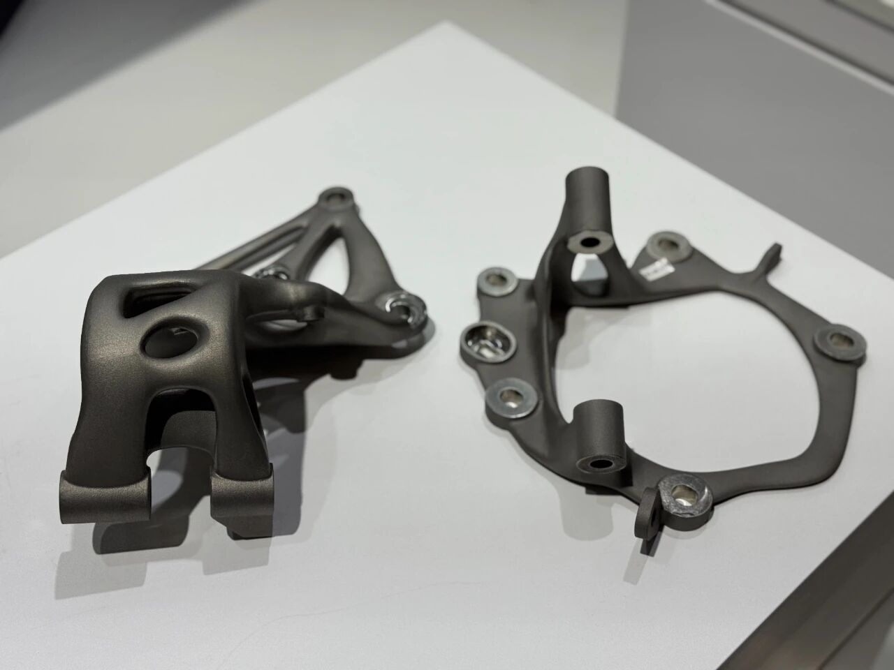 铂力特以高性能钛合金材料为基础,结合拓扑优化结构设计,打造了兼顾轻量化、高强度与优秀外观表现的钛合金汽车门铰链,并于德国Formnext 2025展会现场展出。