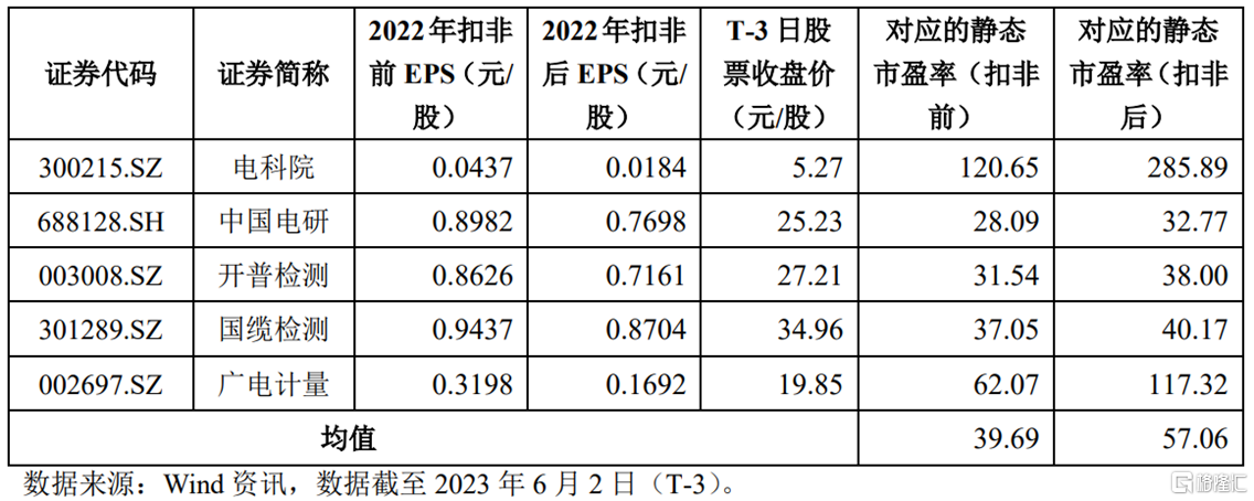 (可比上市公司的市盈率水平情况,图片来源:招股书)