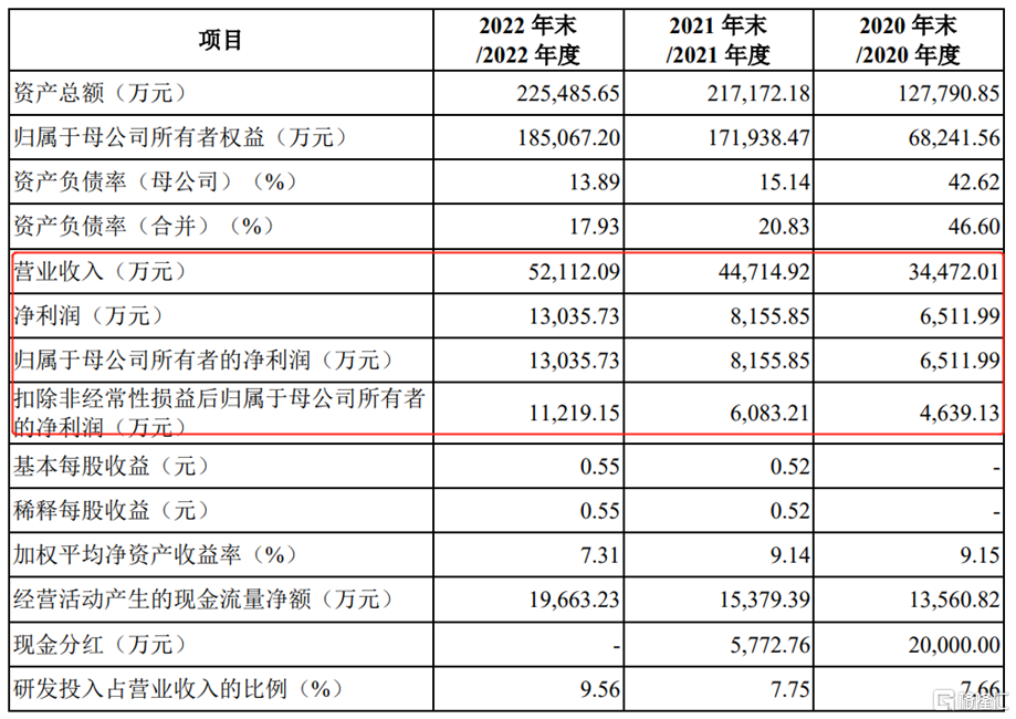根据招股书,2023年1-3月,公司实现营业收入1.36亿元,同比增长58.28%;归母净利润为3482.70万元,同比增长253.85%。总体上,与上年同期相比,公司产能得以恢复,下游市场景气度提升,整体经营业绩快速增长。