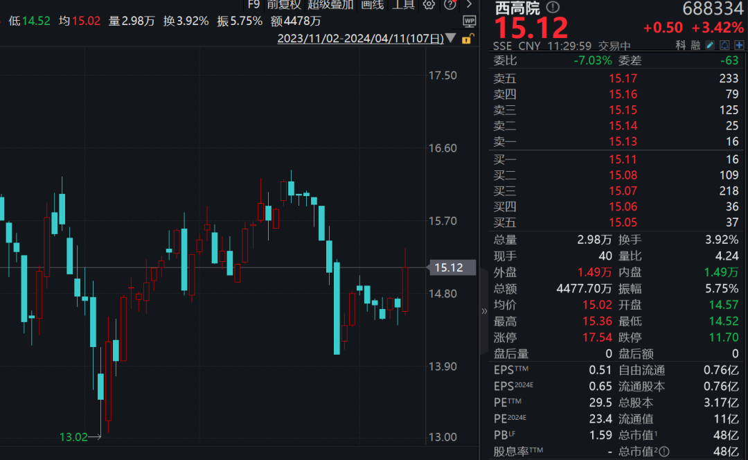 另一只“国家队”也在增持。截至2023年年末,中国中金财富证券(下称“中金财富证券”)持有西高院股票308.98万股,较去年9月末增加35.32万股。中金财富证券为中金公司(601995)全资子公司。