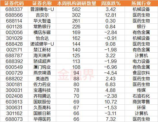 近一周已披露机构调研的上市公司数量达到216家(上周为175家),重点集中在医药生物、电力设备、电子、机械设备、基础化工、计算机等行业。其中11家公司获得超100家机构调研,普源精电成为机构“宠儿”,合计有582家机构调研了该公司。另外,降压药企吉贝尔获得了超300家机构的调研。值得关注的是, 11月13日,由中国心血管病中心、中国医师协会等共同制定的《中国高血压临床实践指南》中,推荐高血压的诊断标准由140/90 mmHg下调至130/80 mmHg,引发民众热议。不过随后,中国国家卫健委表示,目前国家未对成人高血压诊断标准进行调整。