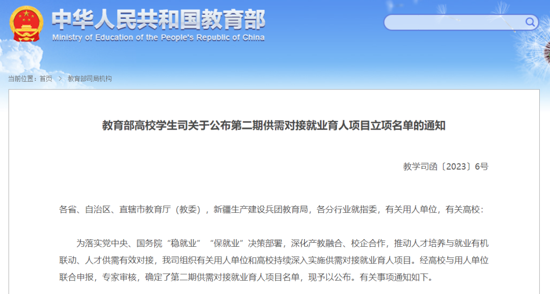 2022年10月,为深化产教融合,推动人才培养与就业有机联动、人才供需有效对接,教育部积极搭建平台,组织企业与高校继续实施第二期供需对接「就业育人项目」。