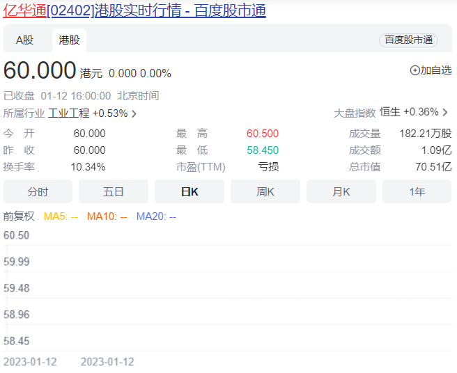 ▲亿华通港股交易首日,收盘与开盘价持平