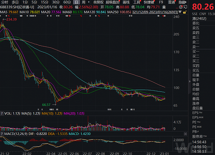 不过作为氢能第一股的亿华通,去年在A股科创板的股价表现并不尽人意。从2021年12月时234.39元/股算起,目前跌幅超65%,市值蒸发将近三分之二。这是为何?
