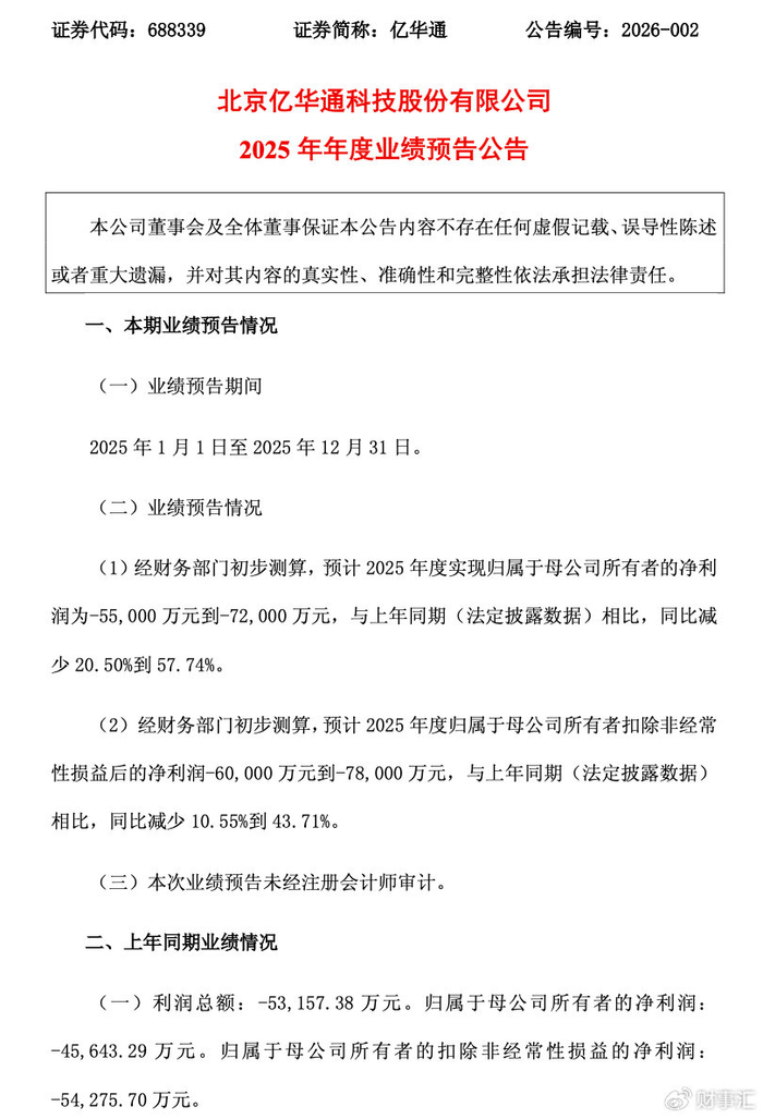 2026年1月30日,亿华通发布业绩预告,预计2025年归母净利润亏损5.5亿元至7.2亿元,这已是这家“氢能第一股”自2020年上市以来连续第六年亏损,且亏损幅度呈持续扩大态势。