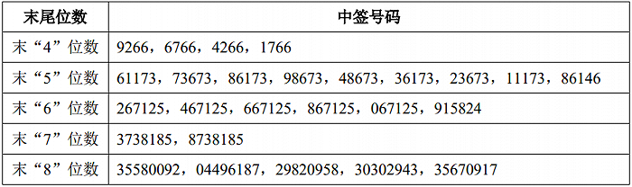 云天励飞3月27日公告,凡参与网上发行申购云天励飞首次公开发行A股并在科创板上市股票的投资者持有的申购配号尾数与上述号码相同的,则为中签号码。中签号码共有45620个,每个中签号码只能认购500股云天励飞A股股票。