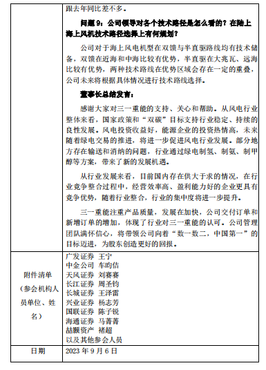 问题 9:公司领导对各个技术路径是怎么看的?在陆上海上风机技术路径选择上有何规划?
