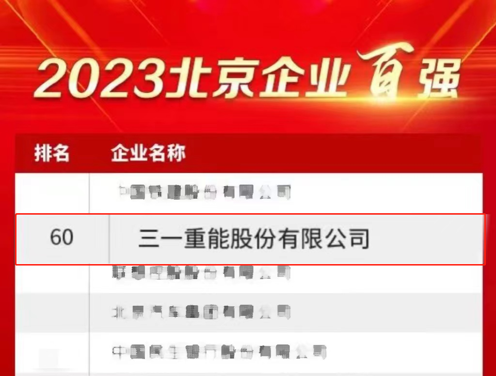 近日,北京企业联合会、北京市企业家协会正式揭晓了“2023北京企业100强”榜单,三一重能荣登“2023北京企业百强榜单”、“2023北京制造业企业百强榜单”。
