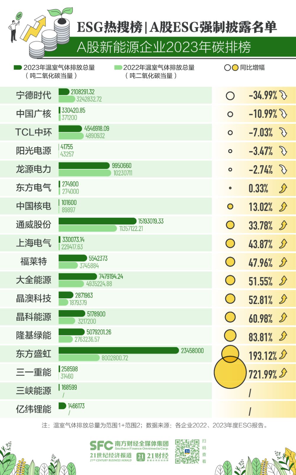 宁德时代碳排同比降低34.99%,三一重能碳排猛增721.99%