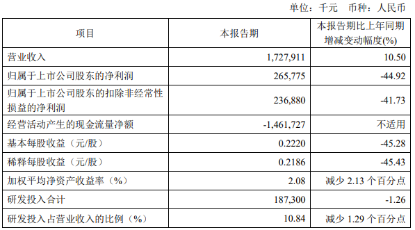 近期,三一重能发布2024年一季报。报告期内,公司实现营业收入17.28亿元,同比增长10.5%;归属于上市公司股东的净利润2.66亿元,同比下滑44.92%;扣非后净利润2.37亿元,同比下降41.73%。