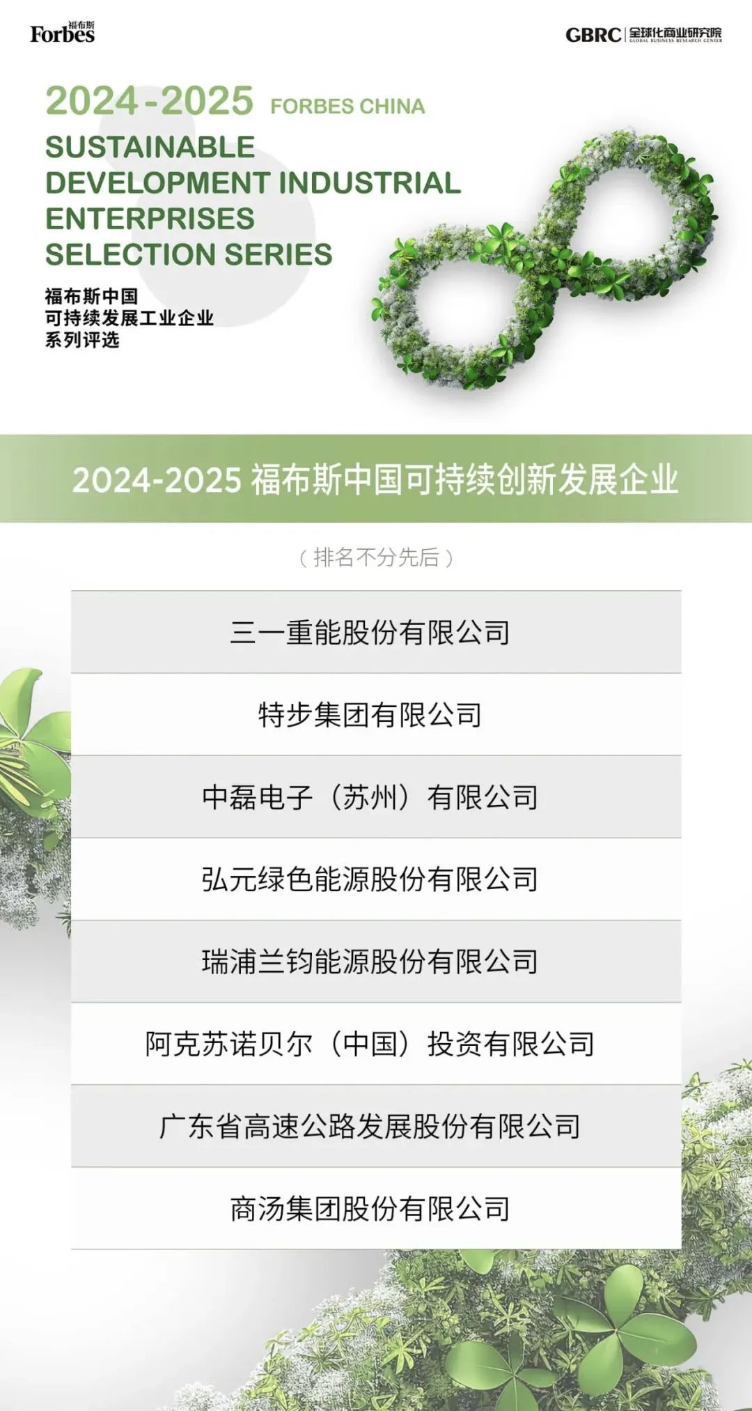 在近日揭晓的2024-2025福布斯中国可持续发展工业企业系列评选中,三一重能实力入选“2024-2025福布斯中国可持续创新发展企业排行榜”,成为风电整机制造领域唯一上榜企业。