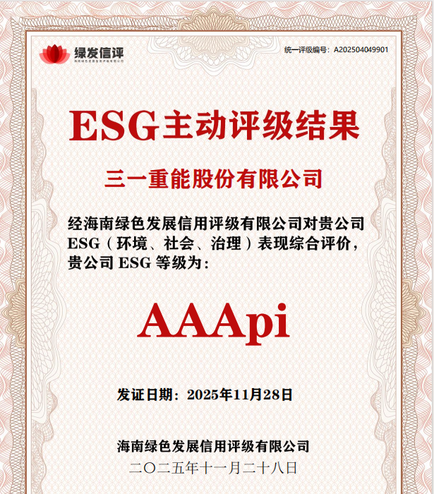 在追求高质量发展的时代浪潮中,ESG已成为衡量企业综合实力的重要标杆。近日,三一重能斩获多项国内外权威ESG领域重磅荣誉,从整体水平到信息披露和专项议题表现,三一重能正以全面领先的ESG实力,赢得资本市场、主流媒体和专业机构的赞誉。