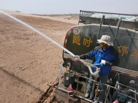 在本年度春季参与治沙的活动中,我们以固沙剂和保水剂的现场应用验证试验为主,在盐碱地和移动沙丘上进行产品应用,并种植梭梭树苗,以期产品持久有效地发挥提高苗木成活率及防风固沙的作用,未来将持续一年监测固沙剂和保水剂的应用情况。甘肃青梭公益发展中心当地负责人马主任表示,“如果固沙剂固沙效果好且维持时间长,不失为一种有效的科学固沙方法,同时期望保水剂可以通过降低灌溉水用量从而起到保护水源的作用,降低沙漠化防治成本”。