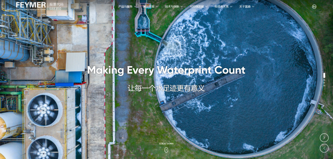 从首页到每一个解决方案的细节,新官网都深度融入了我们的企业使命。我们通过丰富的技术文章、详实的应用案例与可持续发展的实践报告,向您生动诠释富淼科技如何通过绿色科技,让每一滴水的旅程都充满价值。