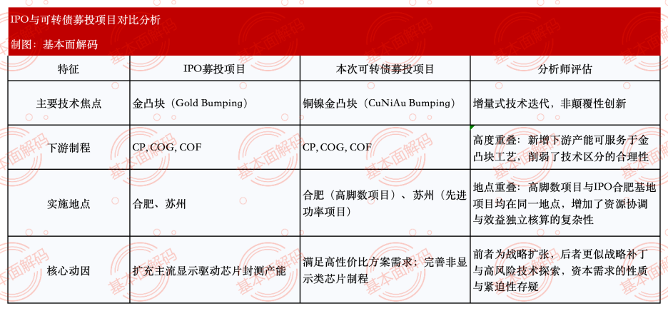 颀中科技(688352)在前次IPO中募集资金用于建设“金凸块”(Gold Bumping)相关产能,而本次“高脚数微尺寸凸块封装及测试项目”则专注于“铜镍金凸块”(CuNiAu Bumping)产能的扩充。颀中科技(688352)以此技术路径的差异作为不存在重复投资的核心论据。