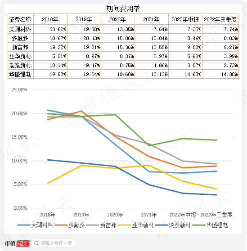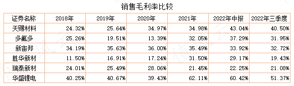 6家公司中,多氟多、胜华新材的毛利率均在2021年有明显提升,分别提升19个百分点、14个百分点。