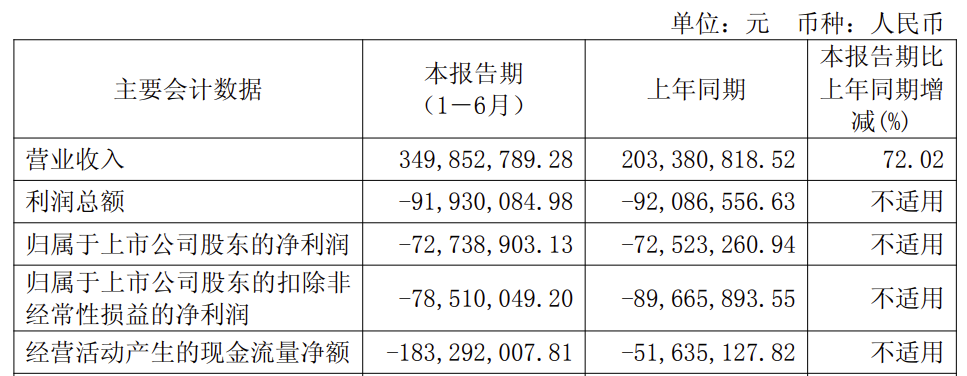 华盛锂电(688353.SH)披露的2025年半年度报告显示,2025年上半年,公司实现营业收入3.50亿元,同比增长72.02%;归属于上市公司股东的净利润-7273.89万元,上年同期为-7252.33万元;归属于上市公司股东的扣除非经常性损益的净利润-7851万元,上年同期为-8966.59万元;经营活动产生的现金流量净额为-1.83亿元,上年同期为-5163.51万元。