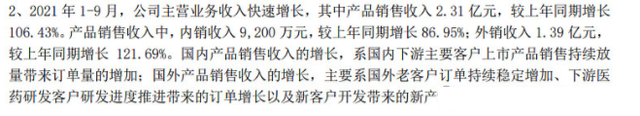前三季度净利润1.42亿同比增幅153%扣非1.3亿增幅143%营业收入2.62亿增幅108%