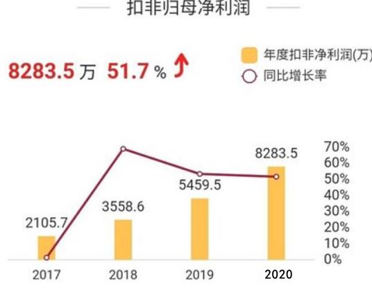 从去年年报的这张图我们可以清晰的看的出来小键到2020年已经连续四年维持了50%以上的扣非净利润的增长率;