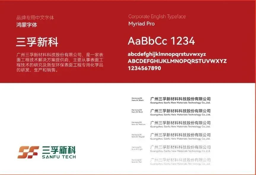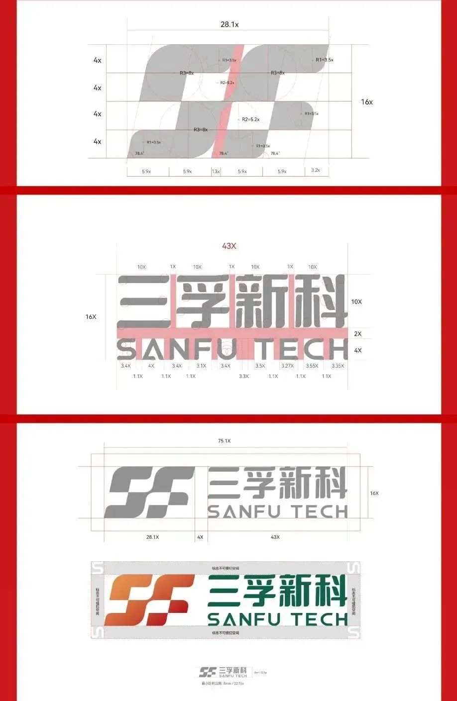 在品牌标志的使用标准上,三孚新科针对品牌标志的结构和比例关系制定了严格的规范标准,从图形与字形的高度、宽度、等比多个方面进行了统一性。