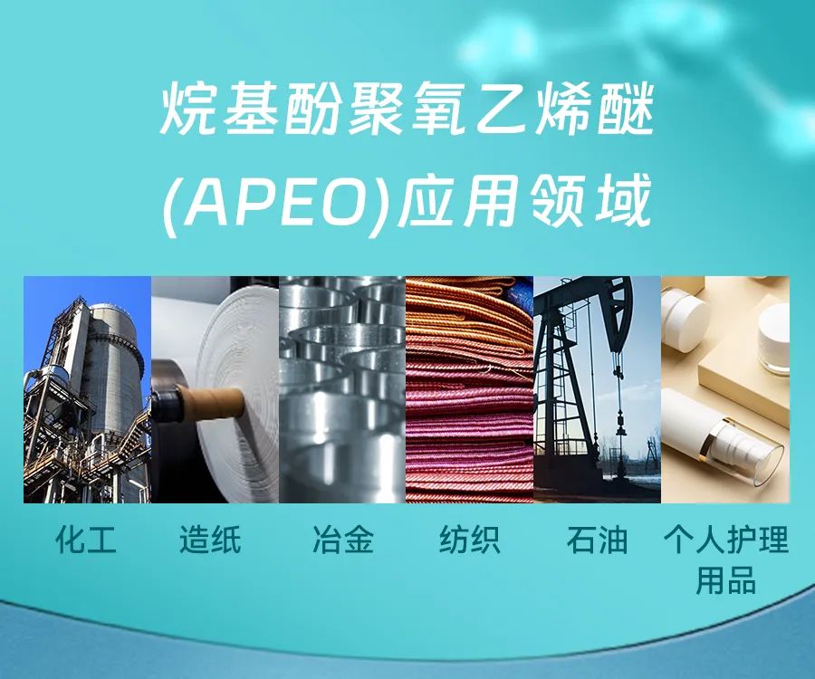 壬基酚主要用作生产非离子表面活性剂——烷基酚聚氧乙烯醚(APEO),APEO具有优良的渗透、乳化、分散、浸润和洗涤等作用,广泛用于化工、造纸、冶金、纺织、石油和个人护理用品等行业,在表面工程行业多用于前处理化学品和电镀添加剂的生产制造。