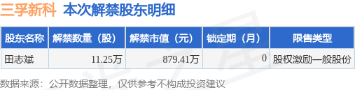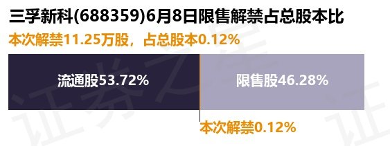 根据市场公开信息整理,三孚新科(688359)于6月8日将有11.25万股限售股份解禁上市,为公司股权激励一般股份,占公司总股本0.12%。最近一年内,该股累计解禁177.98万股,占总股本的1.92%。本次解禁后,公司还有4295.2万股限售股份,占总股本46.28%。具体如下图所示: