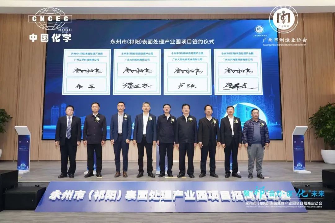 表面工程行业正面临园区化、环保化、智能化、国产化,四大变革。聚焦表面工程等新材料产业,中国化学工程集团以粤港澳大湾区为平台,与祁阳市政府展开永州市(祁阳)表面处理产业园项目合作,依托中国化学工程集团在化学工程、环保产业、化工园区、基础建设等领域的显著优势,赋能电子信息、机械制造、汽车零部件、五金配件等现代制造产业。