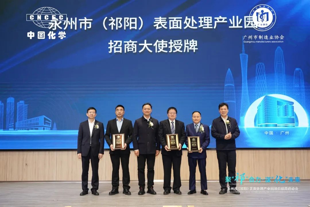 活动当天,三孚新科获得招商大使授牌,并与中化学南方建投、永州市(祁阳)表面处理产业园以及行业内一众领先企业,共同签署战略合作协议,共商共建,为永州市(祁阳)表面处理产业园项目赋能。
