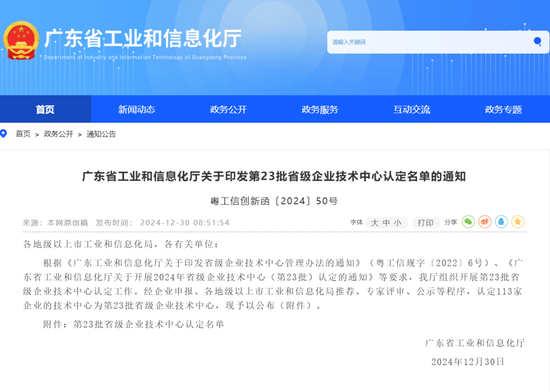 12月30日,广东省工业和信息化厅印发《第23批省级企业技术中心认定名单》,广州三孚新材料科技股份有限公司(以下简称“三孚新科”)荣耀登榜。广东省长期以来积极倡导并支持企业设立技术中心,对于具备强大创新能力、良好创新机制、显著引领示范作用且符合标准的企业技术中心给予认定。